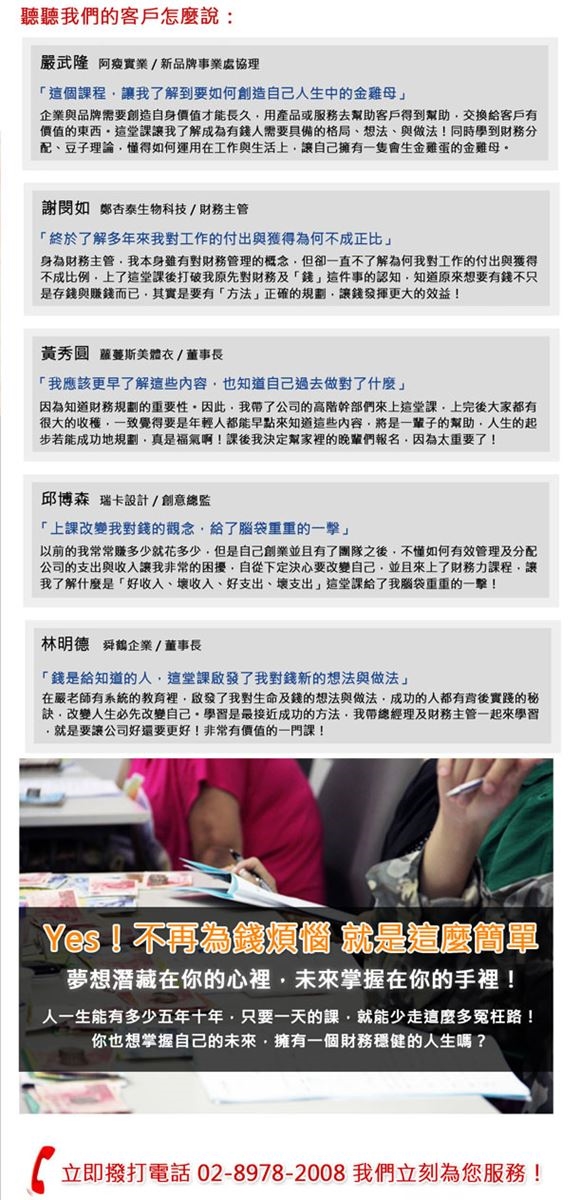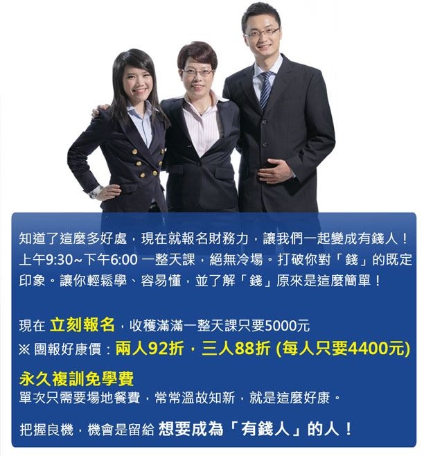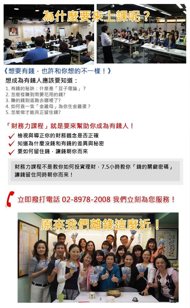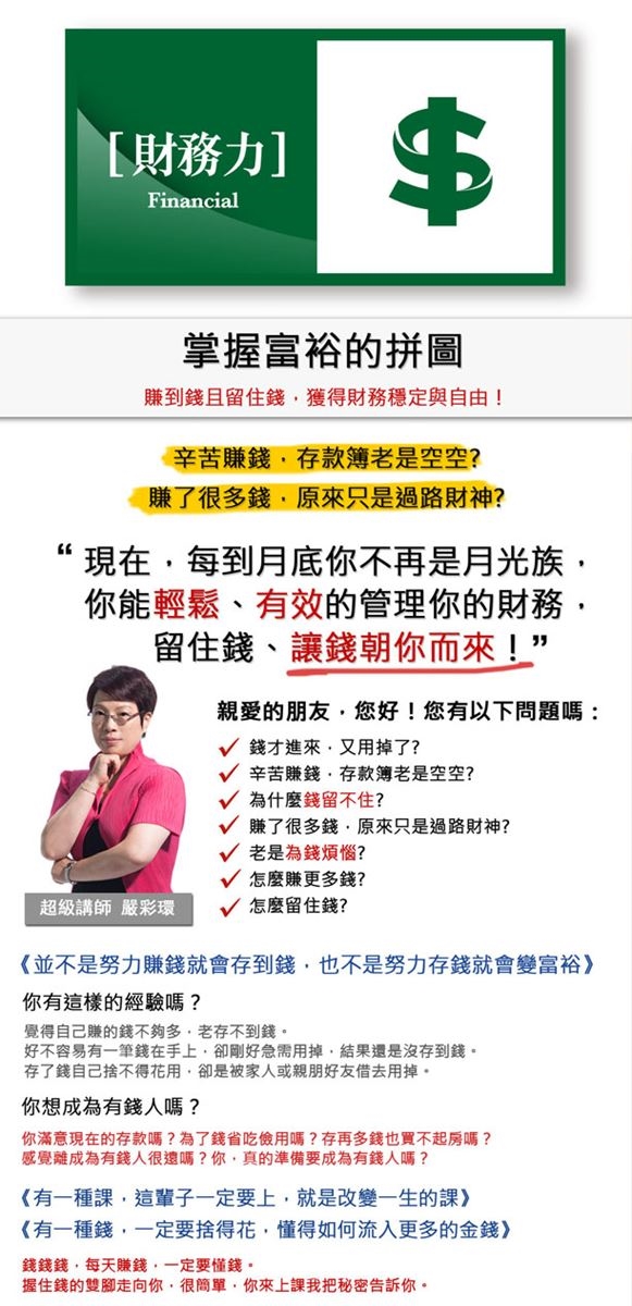 《財務力課程》幫助您~賺到錢且留住錢,獲得財務穩定與自由!