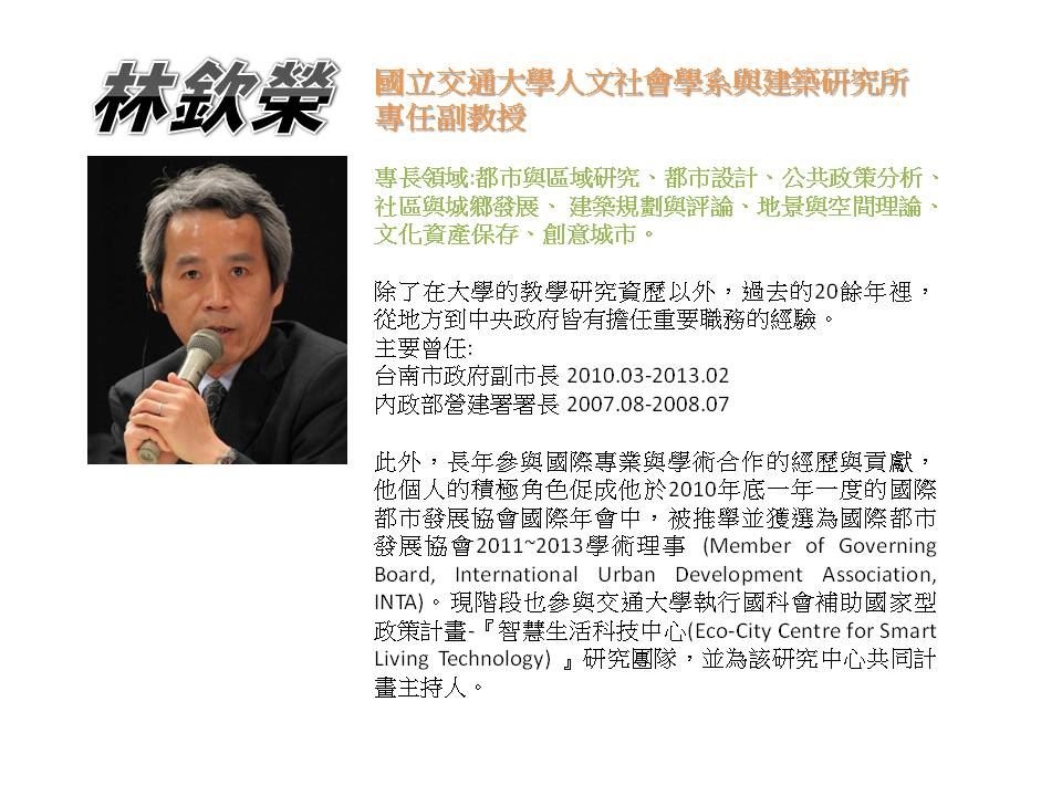 主講人:林欽榮 | 交通大學教授 (前台南市副市長) |