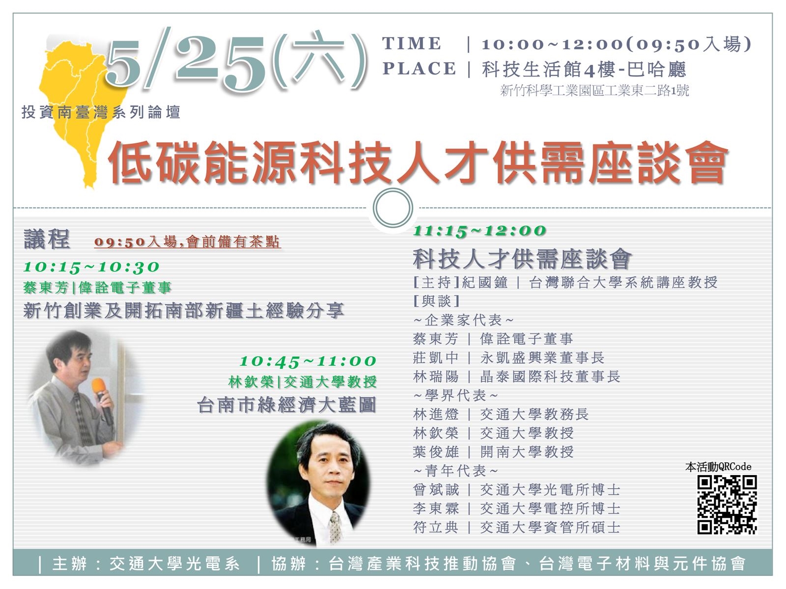 林瑞陽 | 晶泰國際科技董事長 <學界代表> 林進燈 | 交通大學教務長 林欽榮 | 交通大學教授 葉俊雄 | 開南大學教授 <青年代表> 曾斌誠 | 交通大學光電所博士 李東霖 | 交通大學電控所博士 符立典 | 交通大學資管所碩士 |