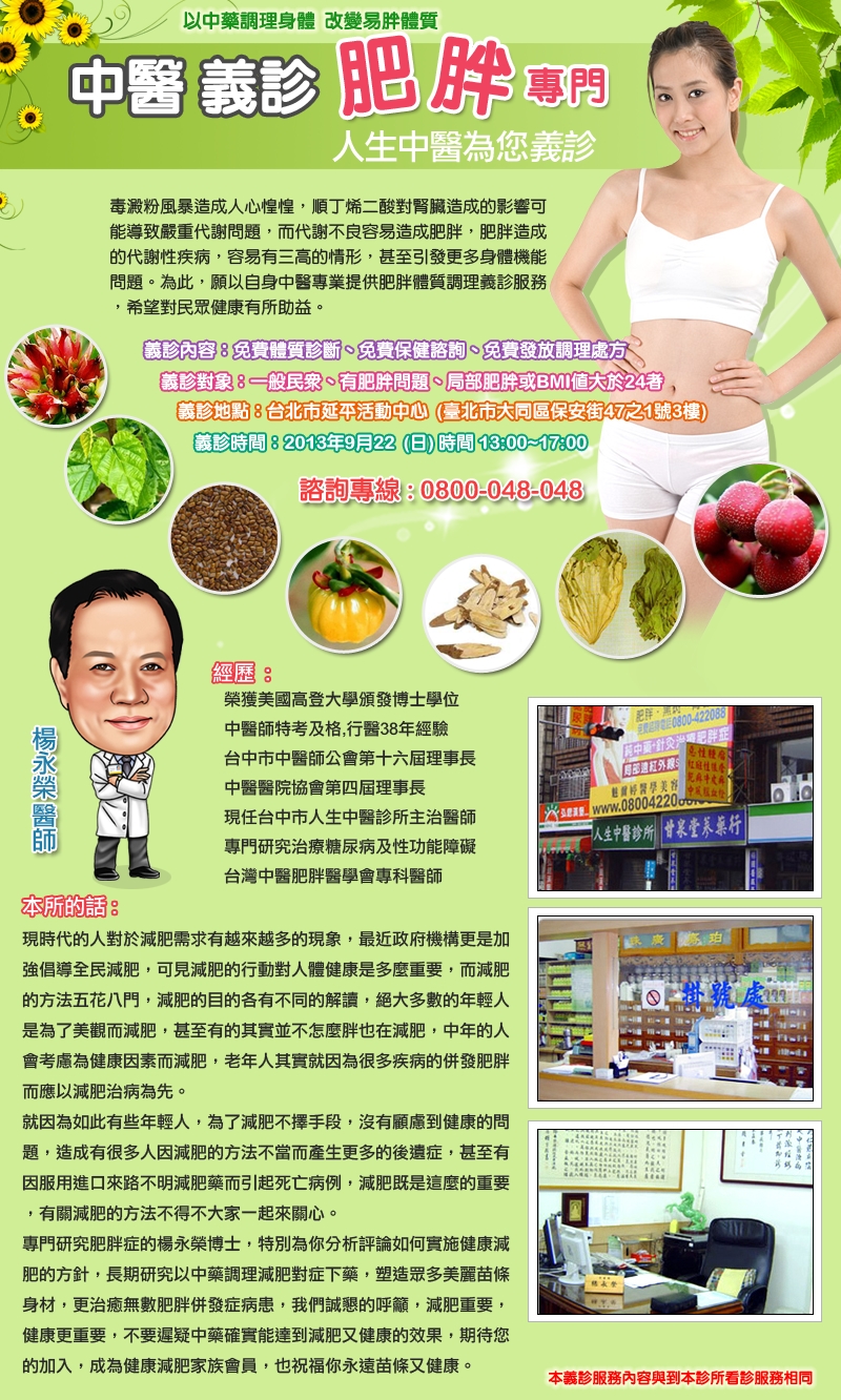 人生中醫期以中醫專業,提供肥胖體質調理義診服務。