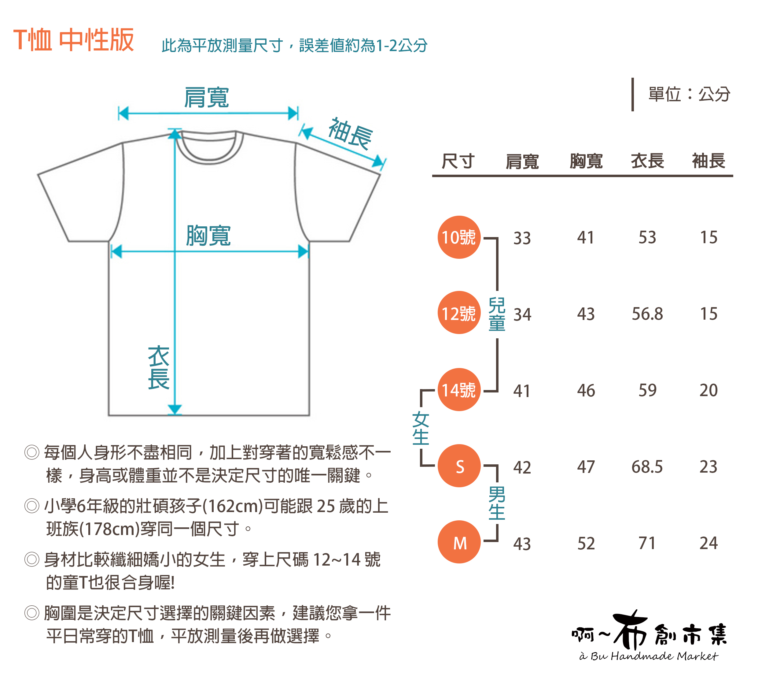 (尺寸:10, 12, 14, S & M / 尺寸表請見https://hostr.co/file/8M4opOnsaps9/T.jpg)