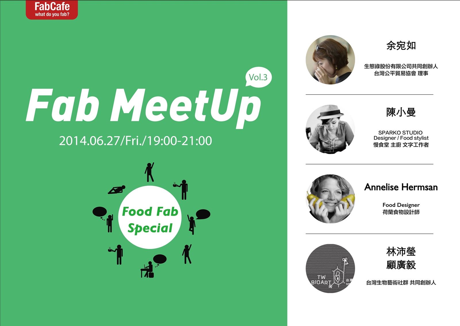 視覺、觸覺外,有否想過數位製造也可照顧你的味覺?FoodFab 是FabCafe 最近積整開拓的新領域,我們相信當「製造」的原點就是把好玩、有趣的融入生活;以「食」為首的日常生活更應該可以與數位生活更加貼近吧? FabCafe領先將東京成功經驗移植台灣推出“雷切馬卡龍”的服務。本月的MeetUp活動將以食物為出發點,探討飲食生活的多面向,更邀請了在產業不同面向的優秀工作者來分享他們在此產業的經驗與作品,一起加入前所未有的食品x製作話題探討吧!