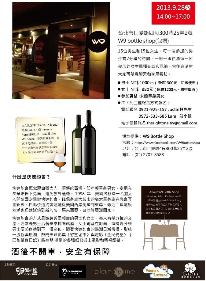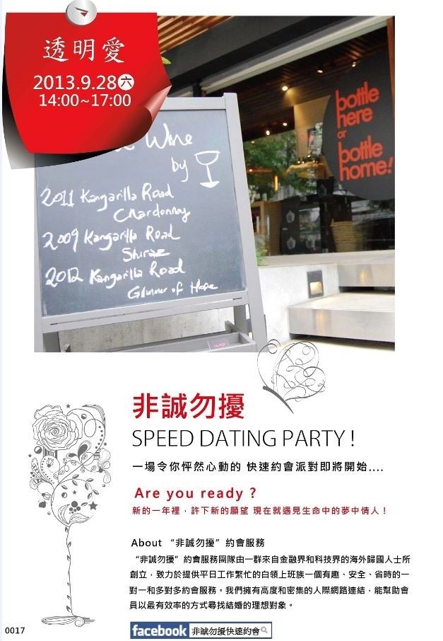 本月份我們在 9/28(六)下午 有一場快速約會哦!