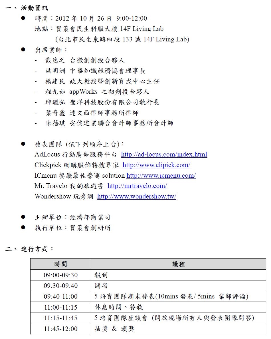 2012.10.26 (Fri) 09:00 - 12:00 (GMT+8)
