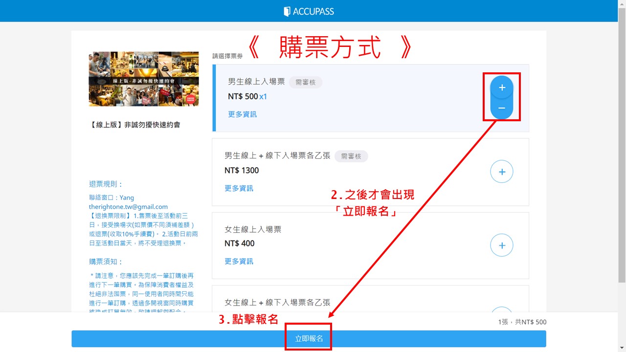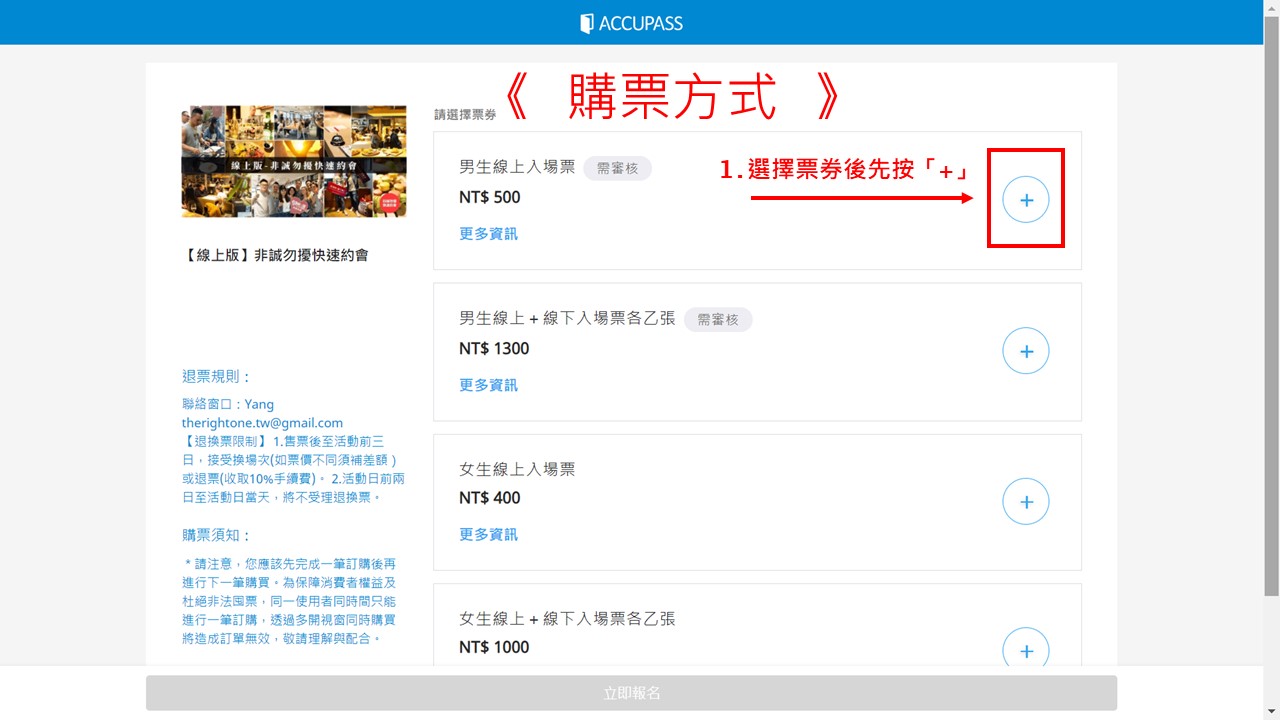 【線下版】非誠勿擾快速約會之票價為:男生1,300元、女生1,000元