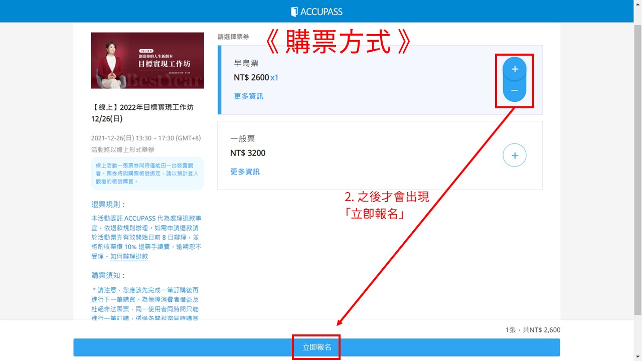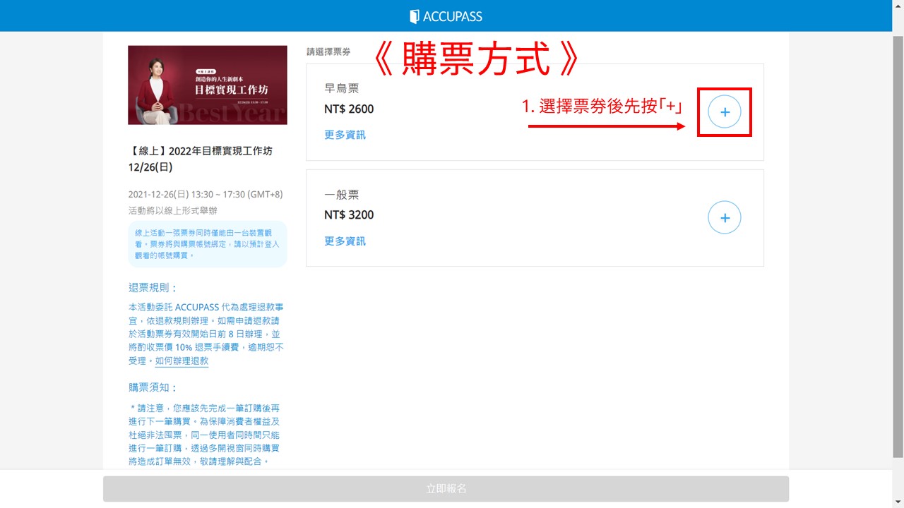 - 早鳥票 $3,600 ( 2022/7/15 以前購買)