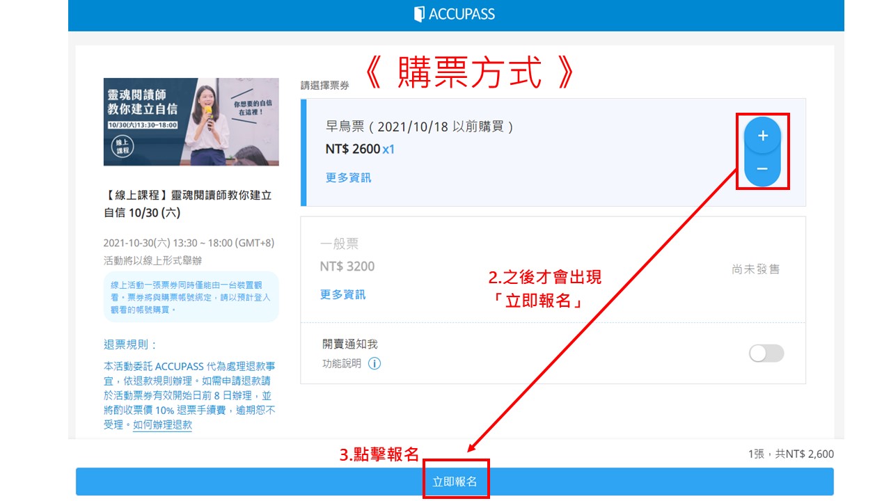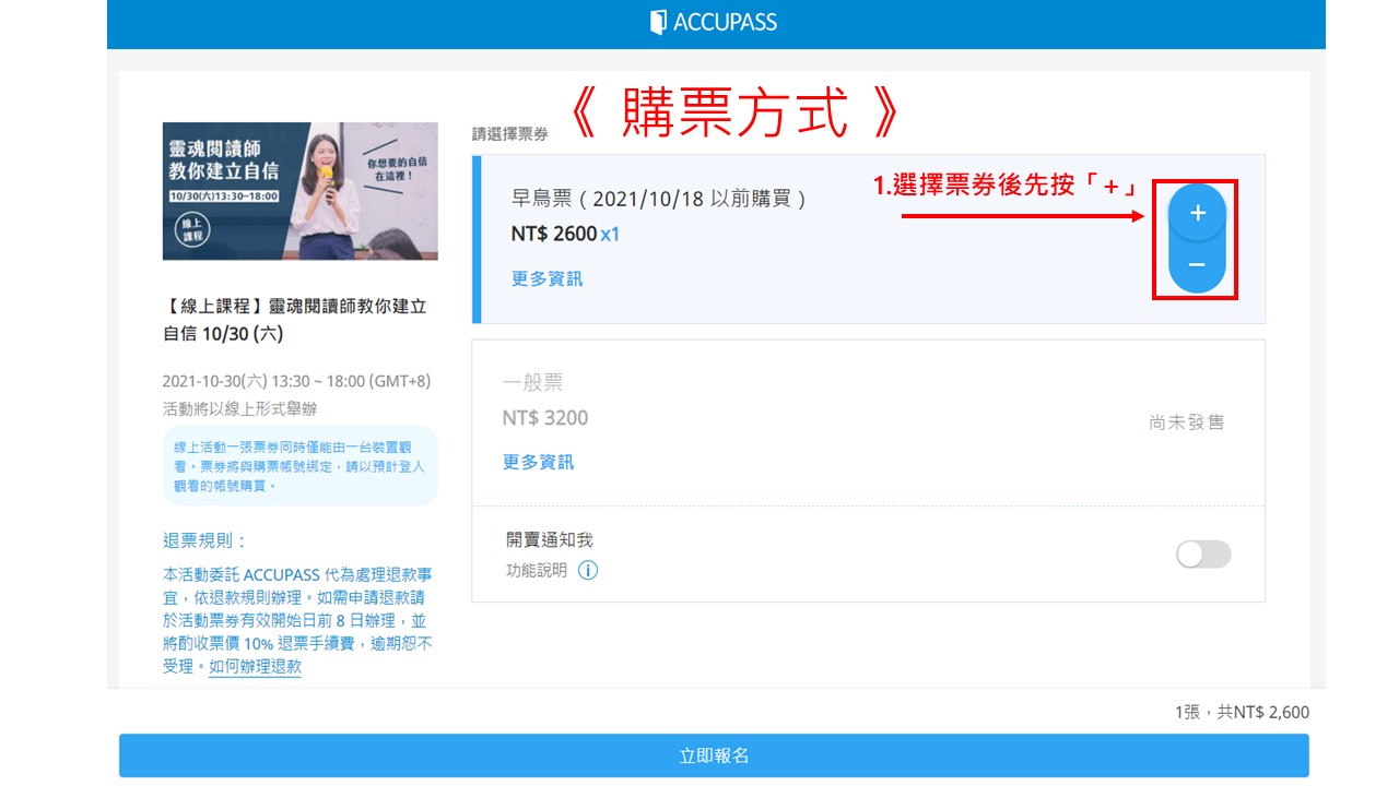 早鳥票 $2600 (2021/10/18 以前購買)
