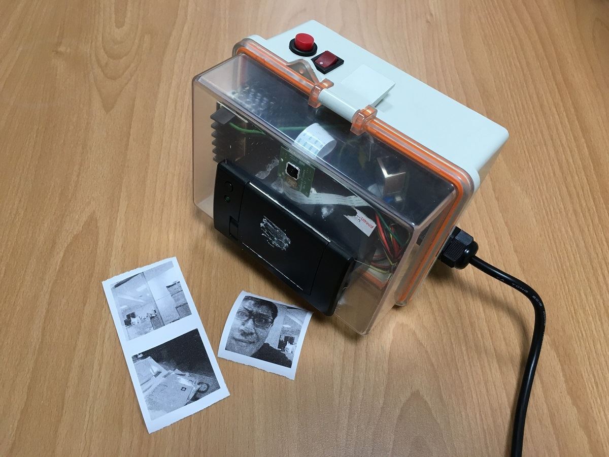 在Make雜誌/馥林文化開發專案的Maker - Dahai利用樹莓派開發板,搭配數位相機模組與熱感印表機,做出Maker版本的拍立得相機。軟體部分採用Adafruit開發的熱感式印表機函式庫,加上樹莓派內建的系統程式raspistill來驅動數位相機模組,硬體部分則是使用電子材料行就能買到的電源供應器(小烏龜)及防水盒等配件,自己動手裁切組裝,就可以開始隨拍即印,記錄每一刻歡樂時光囉!
