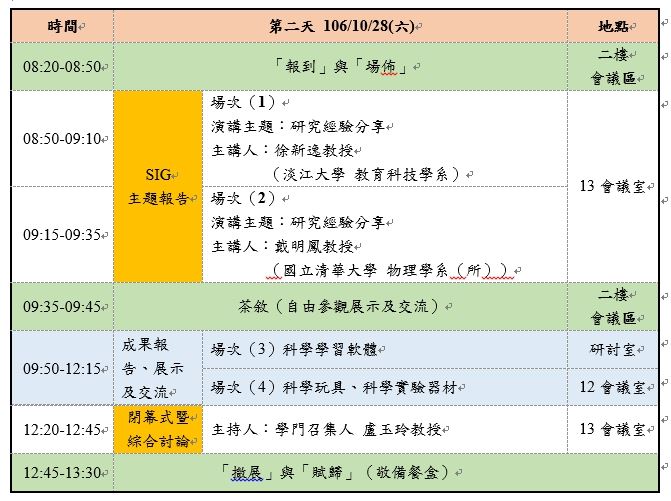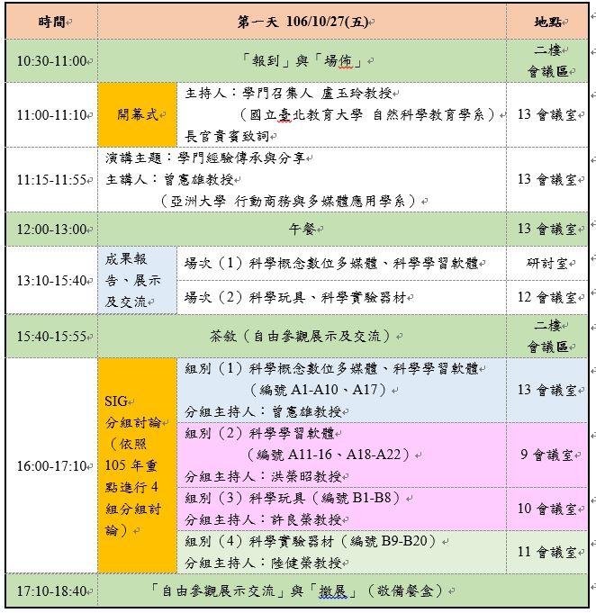 會議日期:106年10月27日至28日(星期五、六)