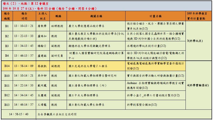 - 本次「成果報告、展示及交流」時段最後將開放各計畫團隊自由參觀展示並相互交流,以達計畫交流與成果推廣之目的。