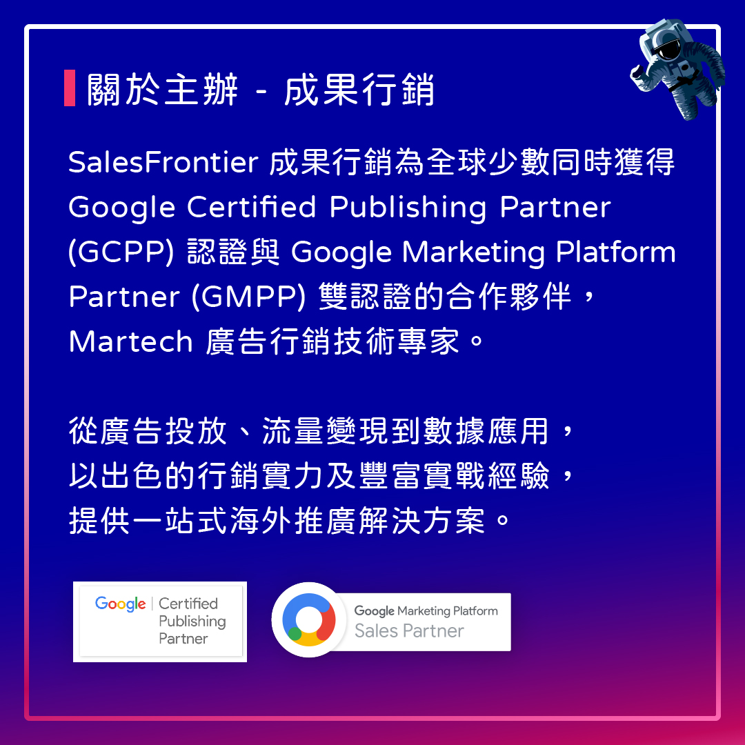 2. 行銷廣告輔導預算金額將全額由成果行銷團隊進行廣告投放操作,並提供相關內容優化建議,協助推廣國際市場。