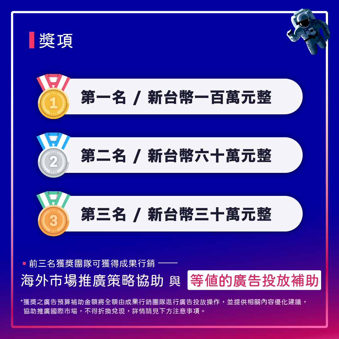 第一名:價值新台幣 100 萬元額度之行銷廣告輔導預算