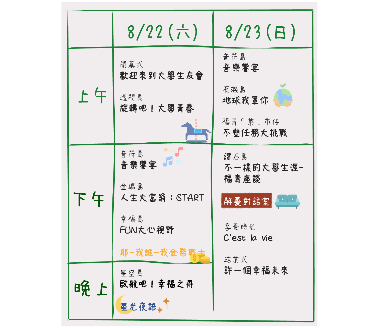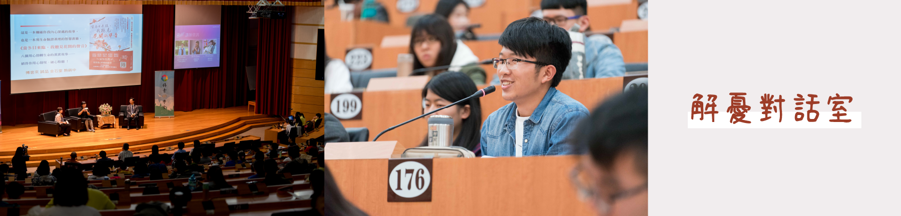 專題講座、體驗遊戲、校園舞台劇、解憂對話室、小組討論