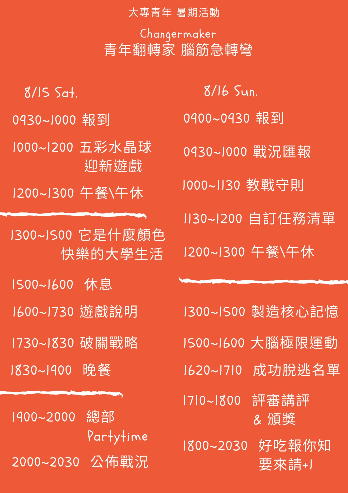 時間:2020年8月15日(六)~16日(日)