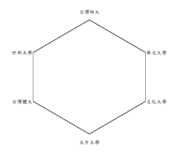 世新大學(109UBA 第一名) 臺灣師大(109UBA 第二名) 文化大學(109UBA 第三名) 佛光大學(109UBA 第四名) 北市大學(109UBA 第五名) 臺灣體大(109UBA 第六名) |