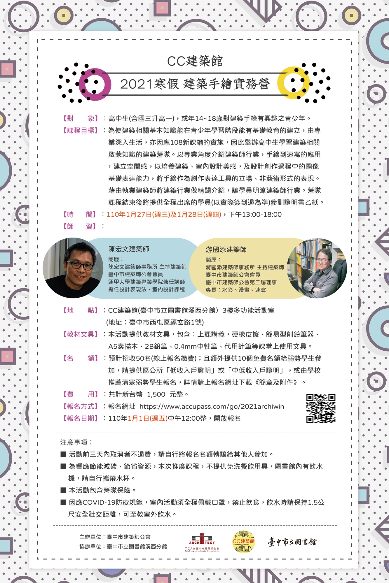 【地 點】:CC建築館(臺中市立圖書館溪西分館)3樓多功能活動室