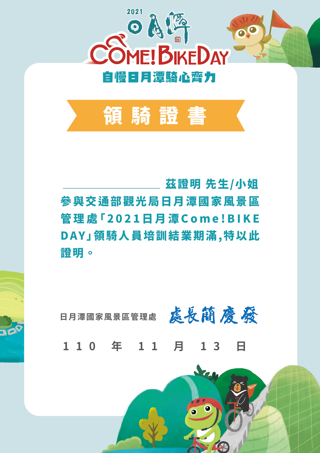 領騎證書示意圖