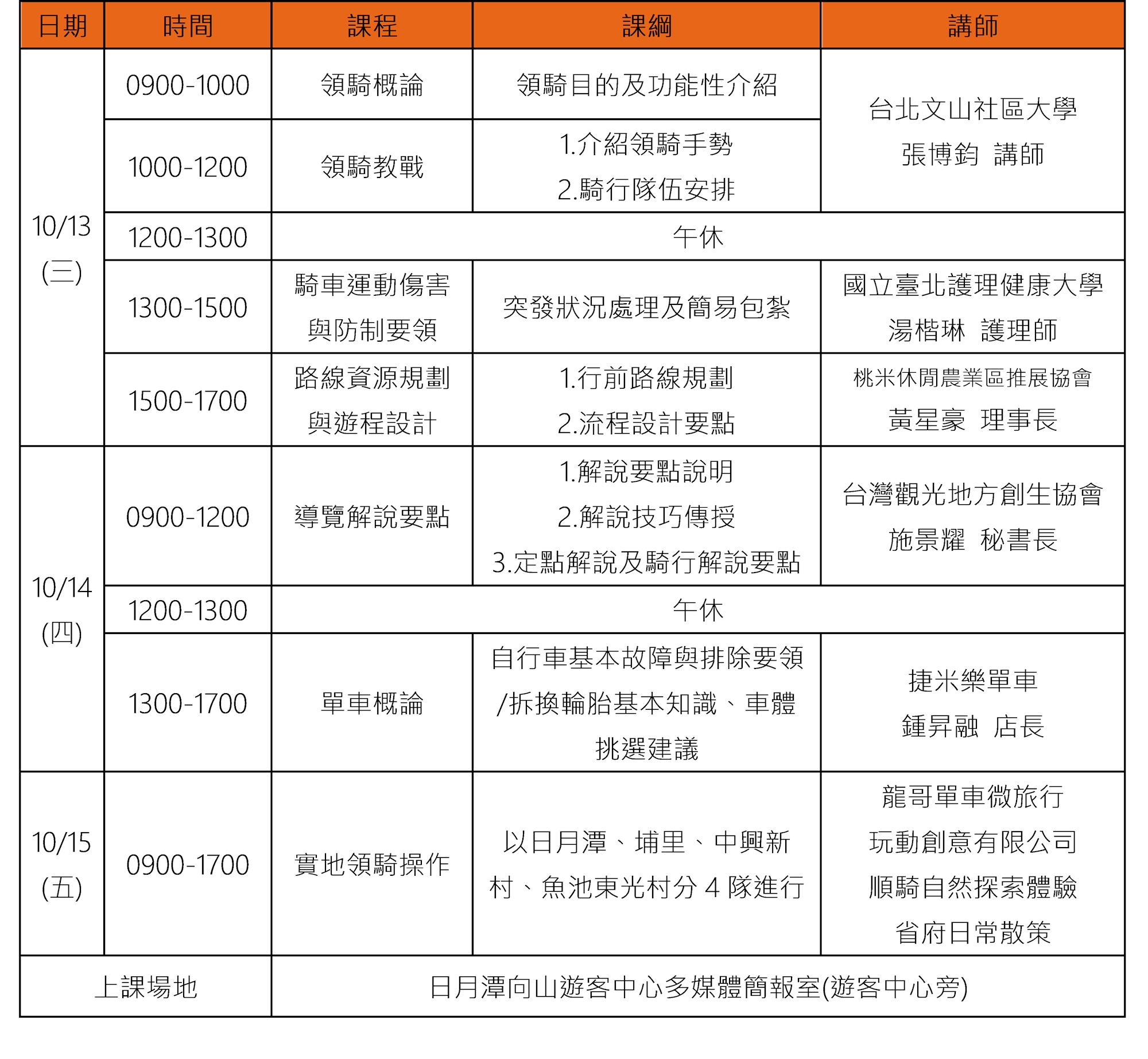 2.10/15(五)為分組實地領騎操作,需自行前往集合地點報到。