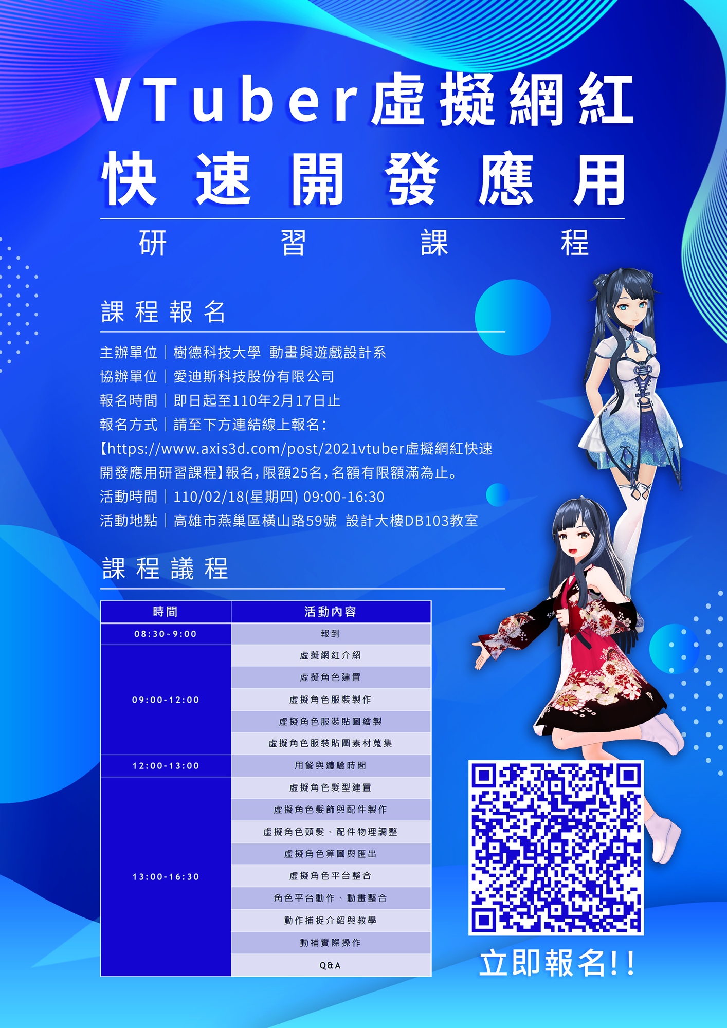 - 活動地點:高雄市燕巢區橫山路59號(樹德科技大學動畫與遊戲設計系)設計大樓DB103教室