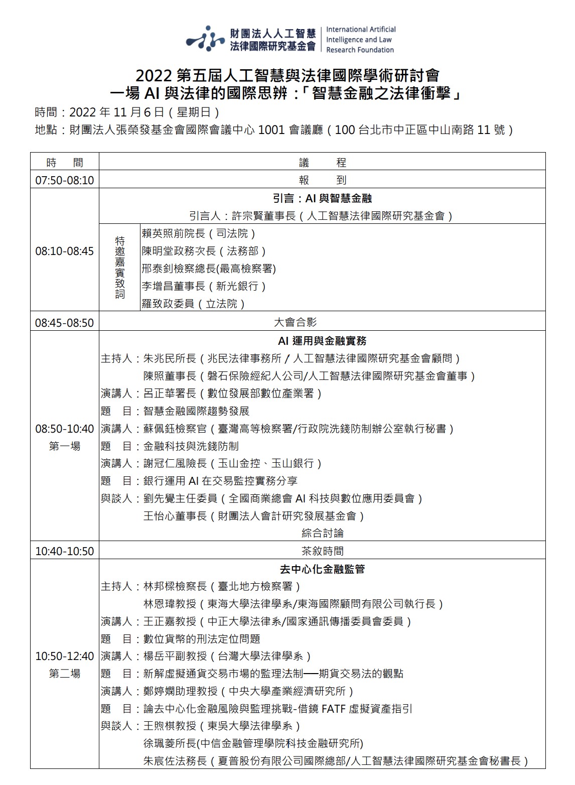 人工智慧法律國際研究基金會:王小姐02-33223090分機9