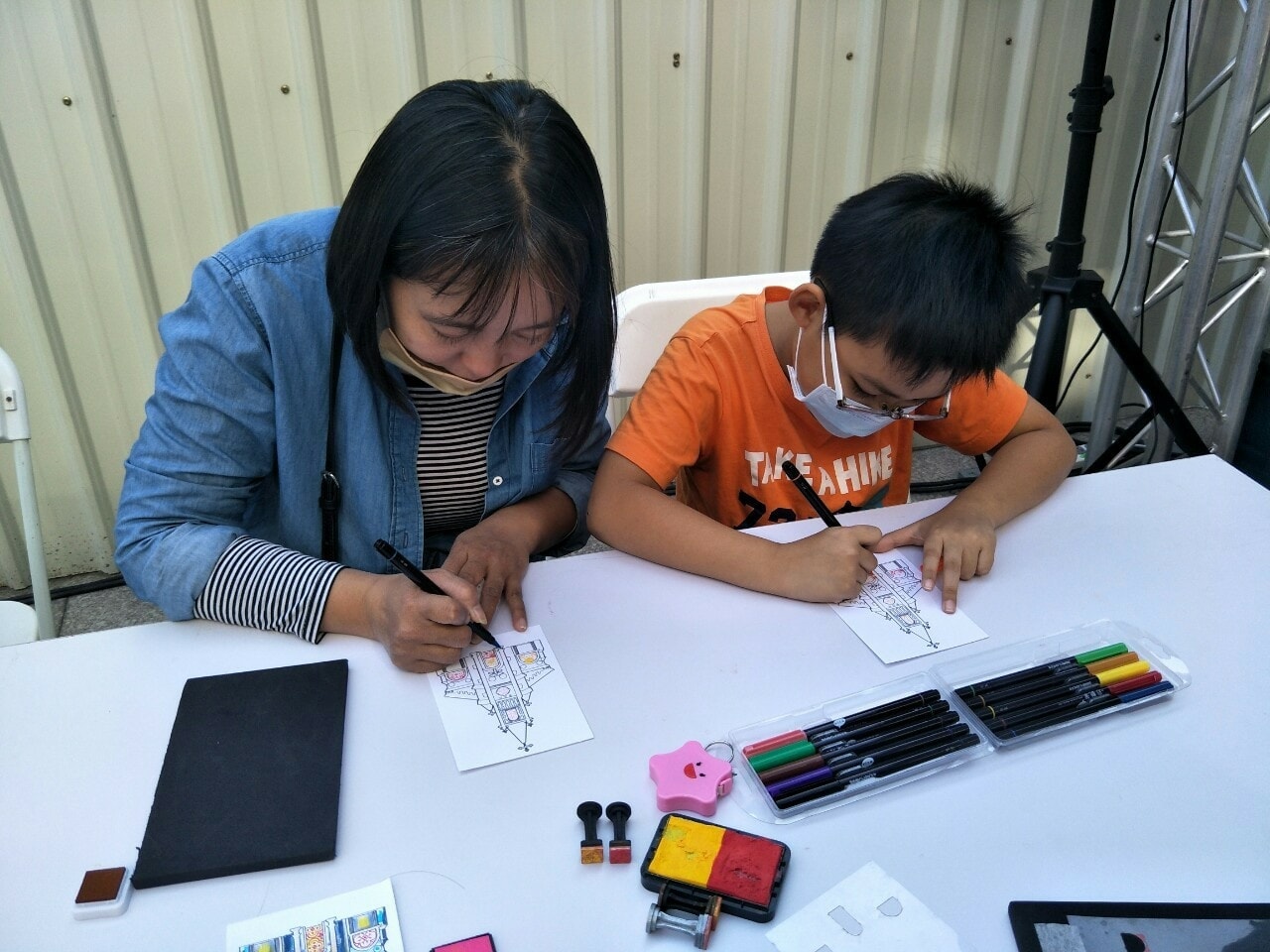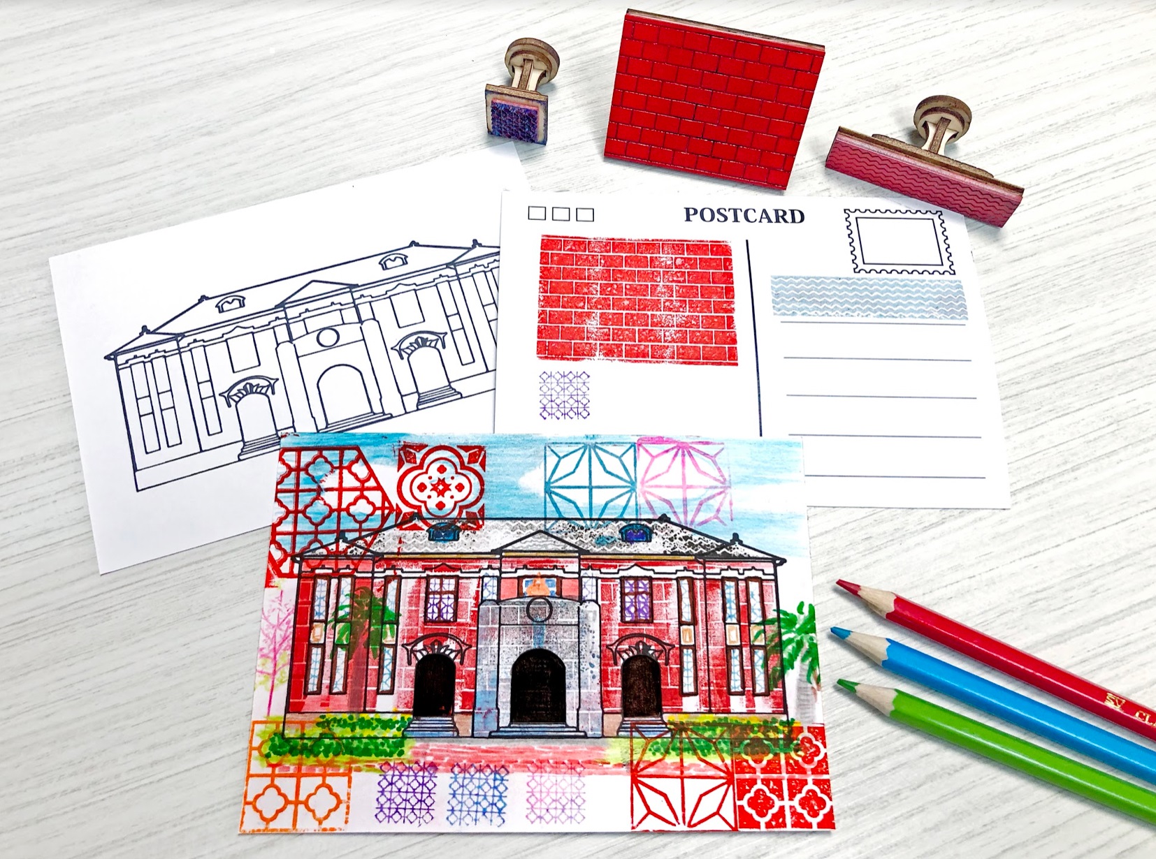 △ 活動大綱:講師講解操作步驟後,學員運用窗花印章以及畫筆美化明信片共兩款(英國領事館、玫瑰天主堂),現場也可以撰寫明信片並且提供代寄服務唷~