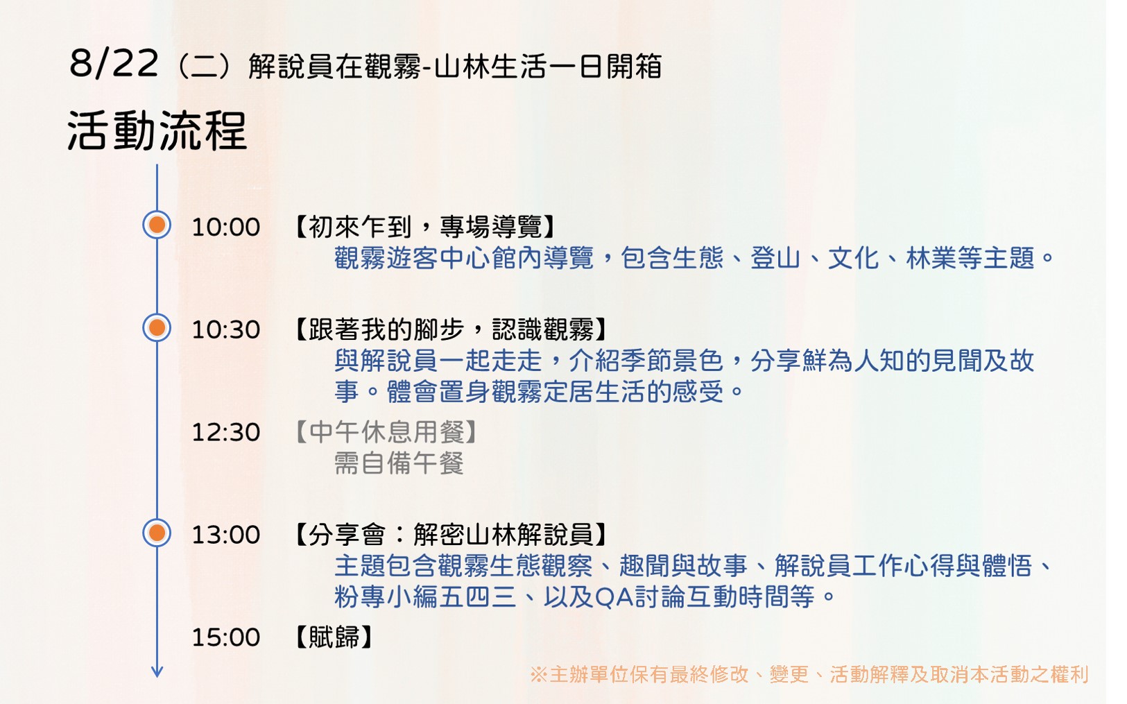 - 已經是觀霧常客的您👉活動將包含各式各樣的幕後故事,發現觀霧的另一面 #隱藏景點。