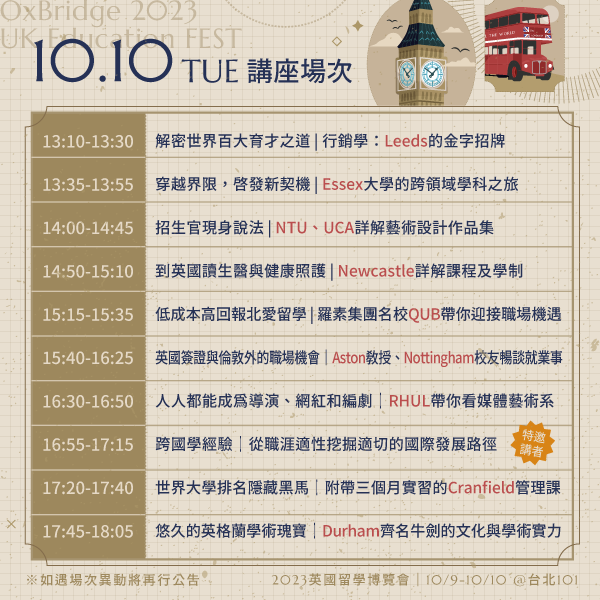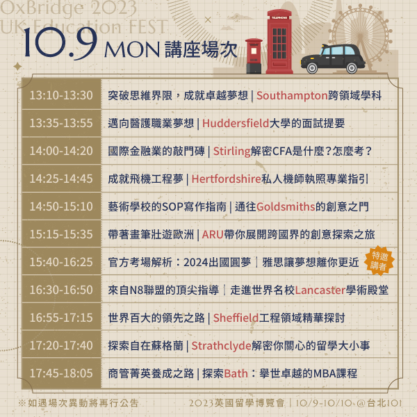 ➺ 參加收穫: 認識英國留學申請流程與辦法、適合自己的選校選系方向