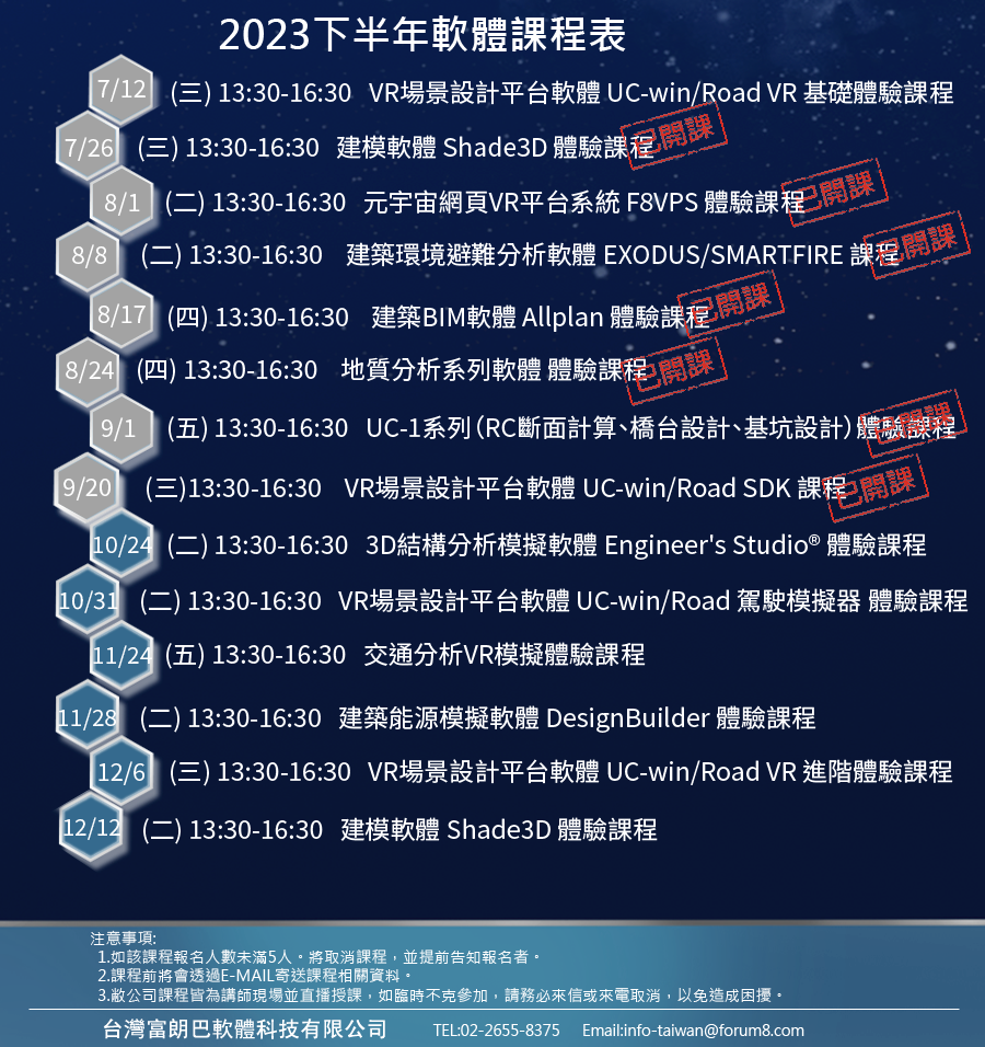 如您有希望參加的場次,請您E-mail至 info-taiwan@forum8.com,