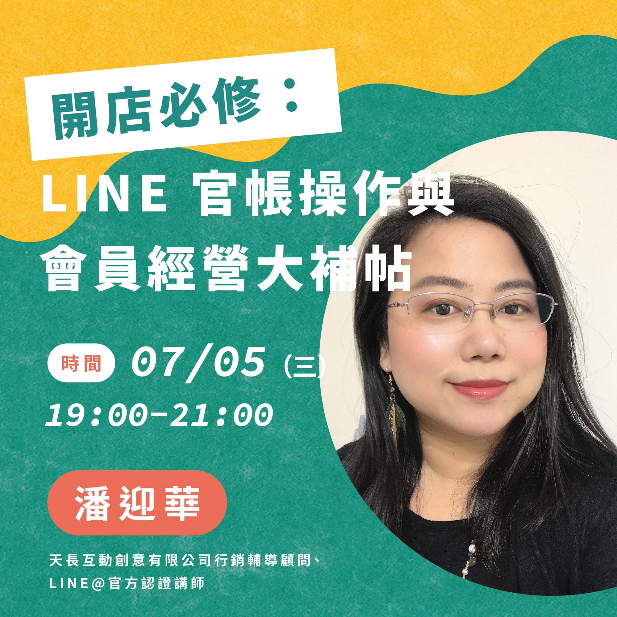 7/05(三)開店必修:LINE 官帳操作與會員經營大補帖|潘迎華