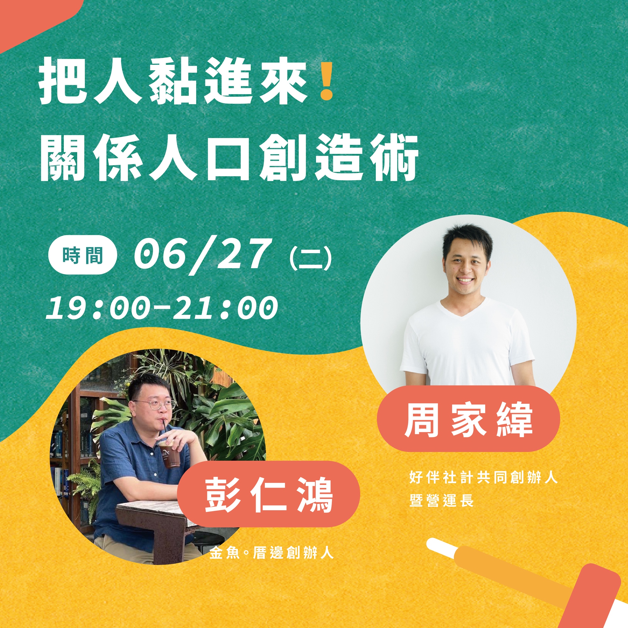 6/27(二)把人黏進來!關係人口創造術|彭仁鴻X周家緯