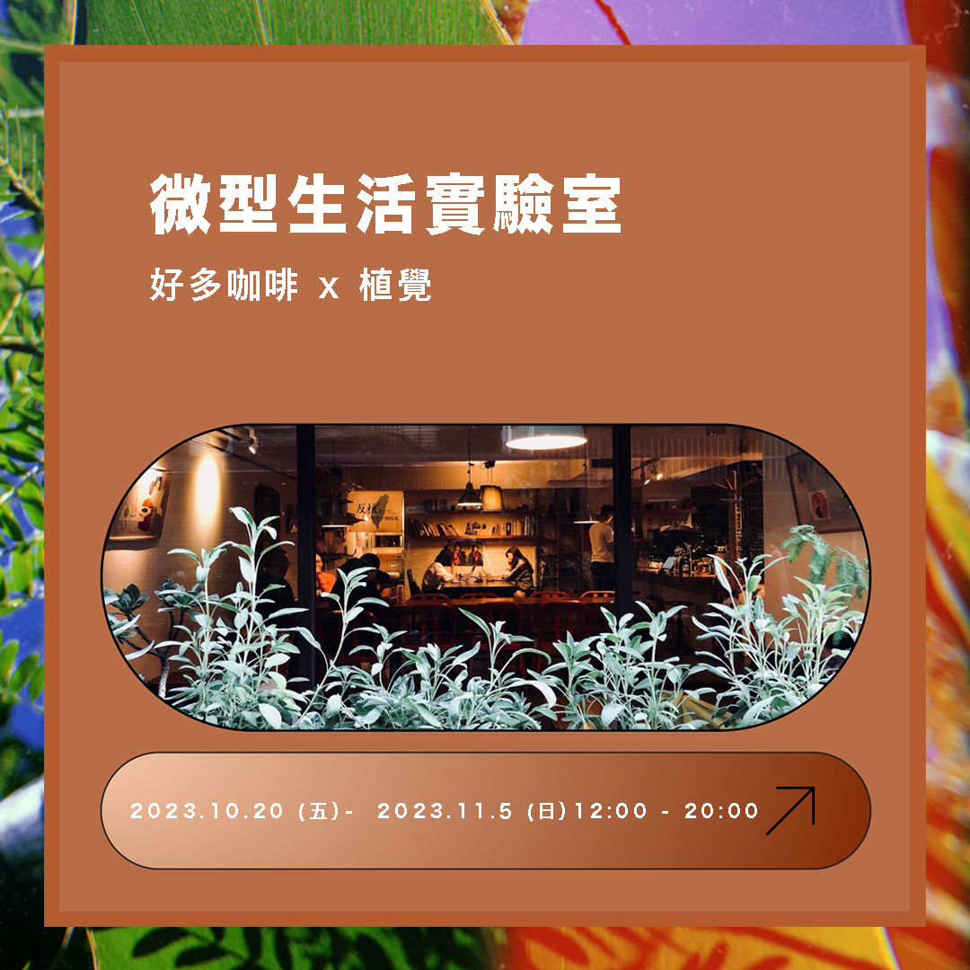 2023植覺以 renew! (未來) 生活短篇為題,於2023年10/20 -11/5舉辦,在週末策畫各種體驗活動,週間則以“ 好多咖啡 x 植覺 微型生活實驗室 ”為主軸,邀請你我一起renew your life!