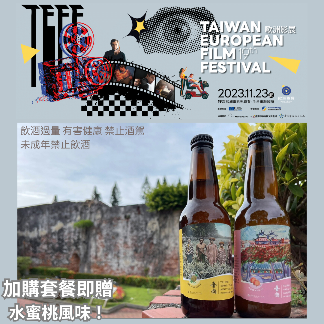 一部歐洲電影 📽️ + 一套精緻餐點 🍽️ + 一瓶臺南400紀念精釀啤酒 🍺+ 一席木質躺椅 💺