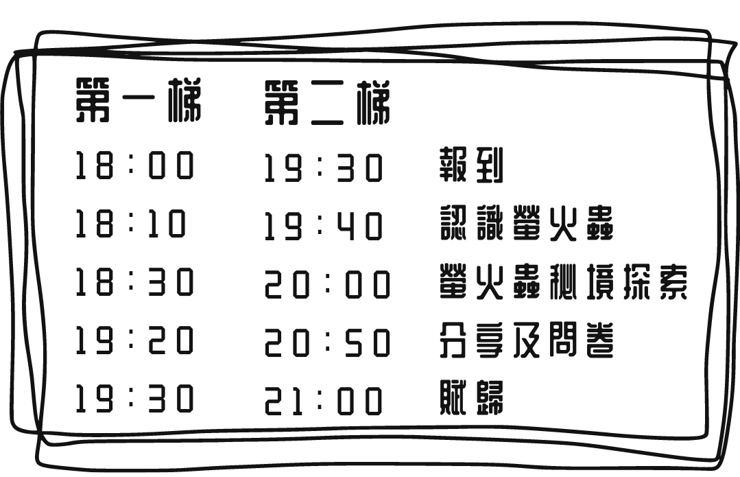 活動場次時間|每日2梯次 ▲請準時報到,請勿提早到或遲到,謝謝
