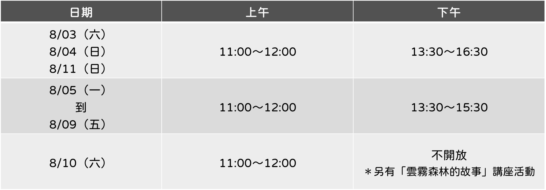 🚶 霧林走讀:每日上午十點,透過詩意的解說,探索雲霧森林的神秘面貌,認識生態插畫家的創作過程。