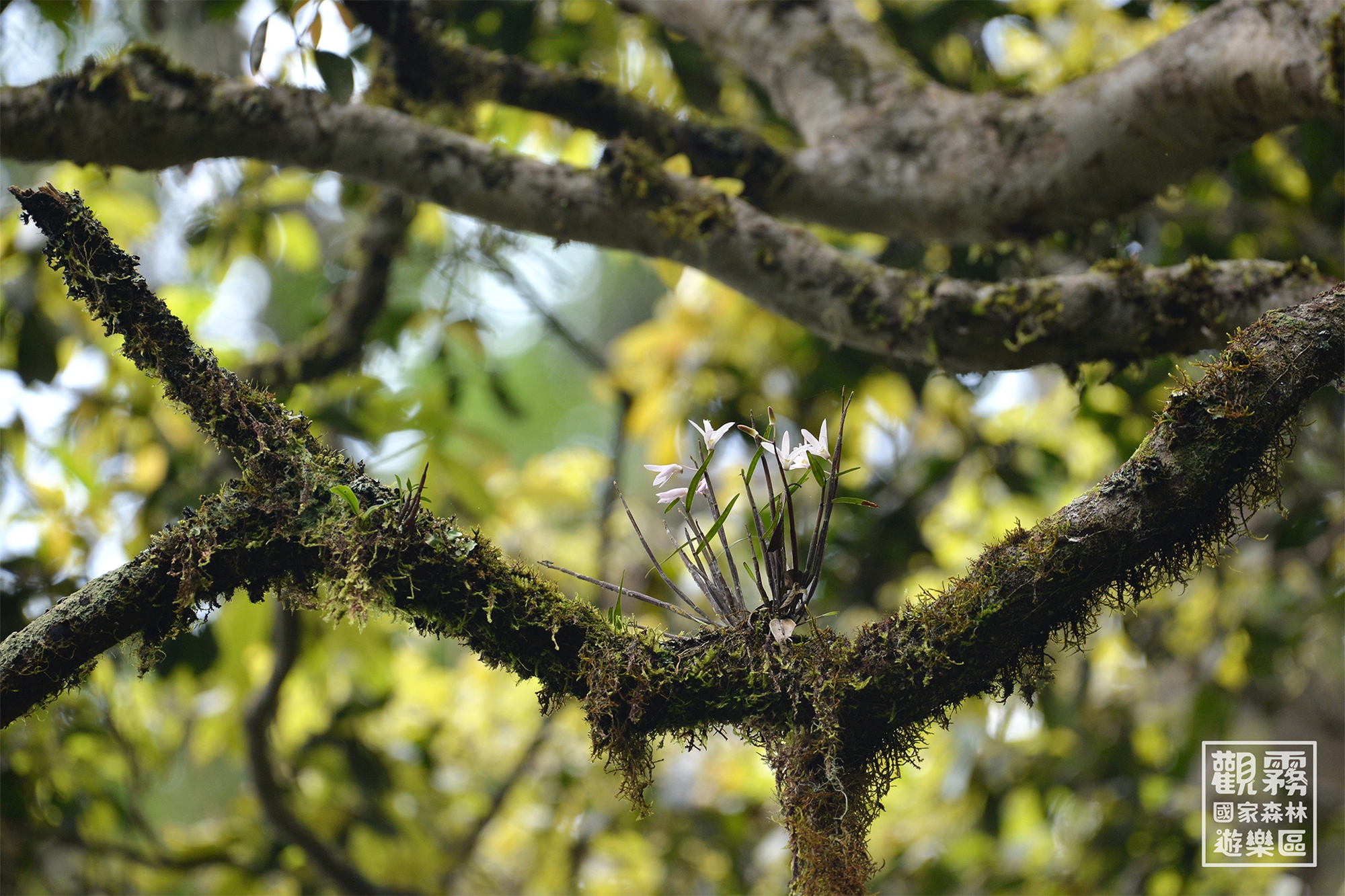 ▲雲霧的魔法纏繞在枝條上開出小巧蘭花。(森之形自然教育團隊提供;陳柏璋攝影)