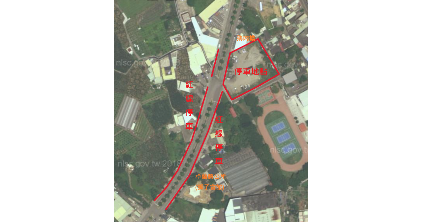 - 自行開車前往者可將車輛停放 卓蘭獅子會館(卓蘭鎮公所臨時辦公處) (https://reurl.cc/Ry0Goz)