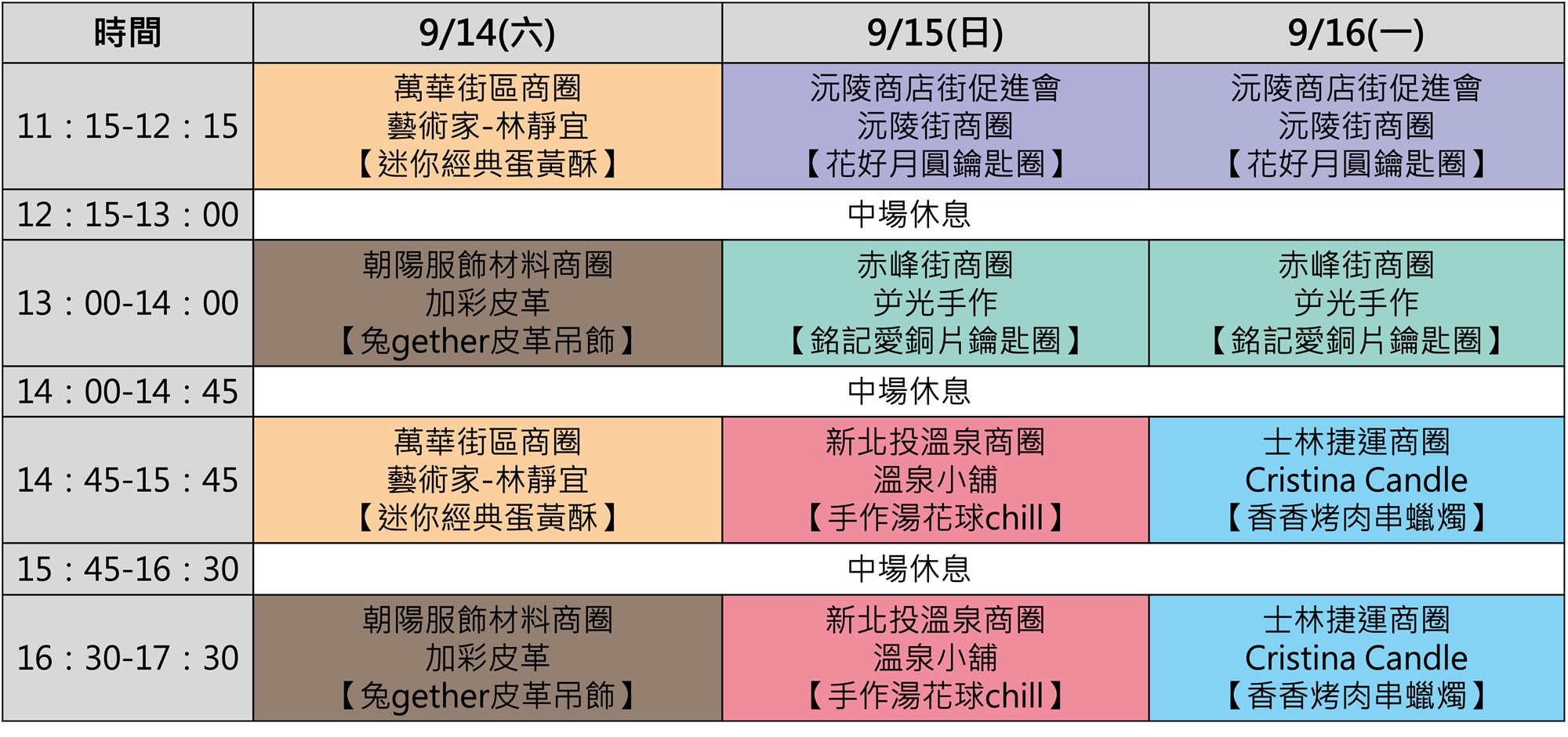 【09/15(日)11:15 - 12:15】、【09/16(一)11:15 - 12:15】