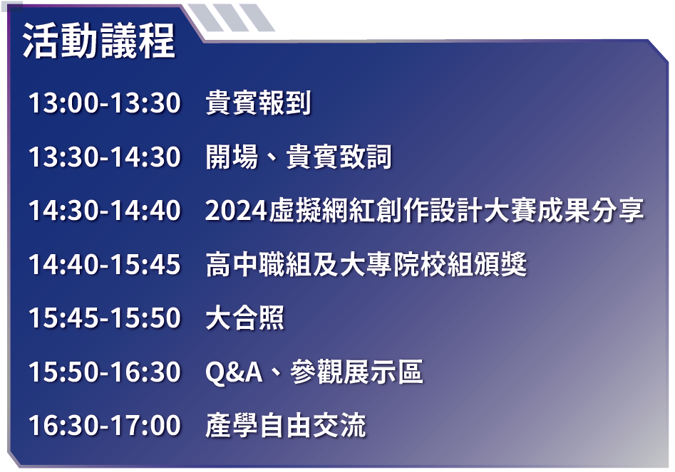 - 活動名稱:2024元宇宙虛擬網紅設計創作大賽-頒獎典禮