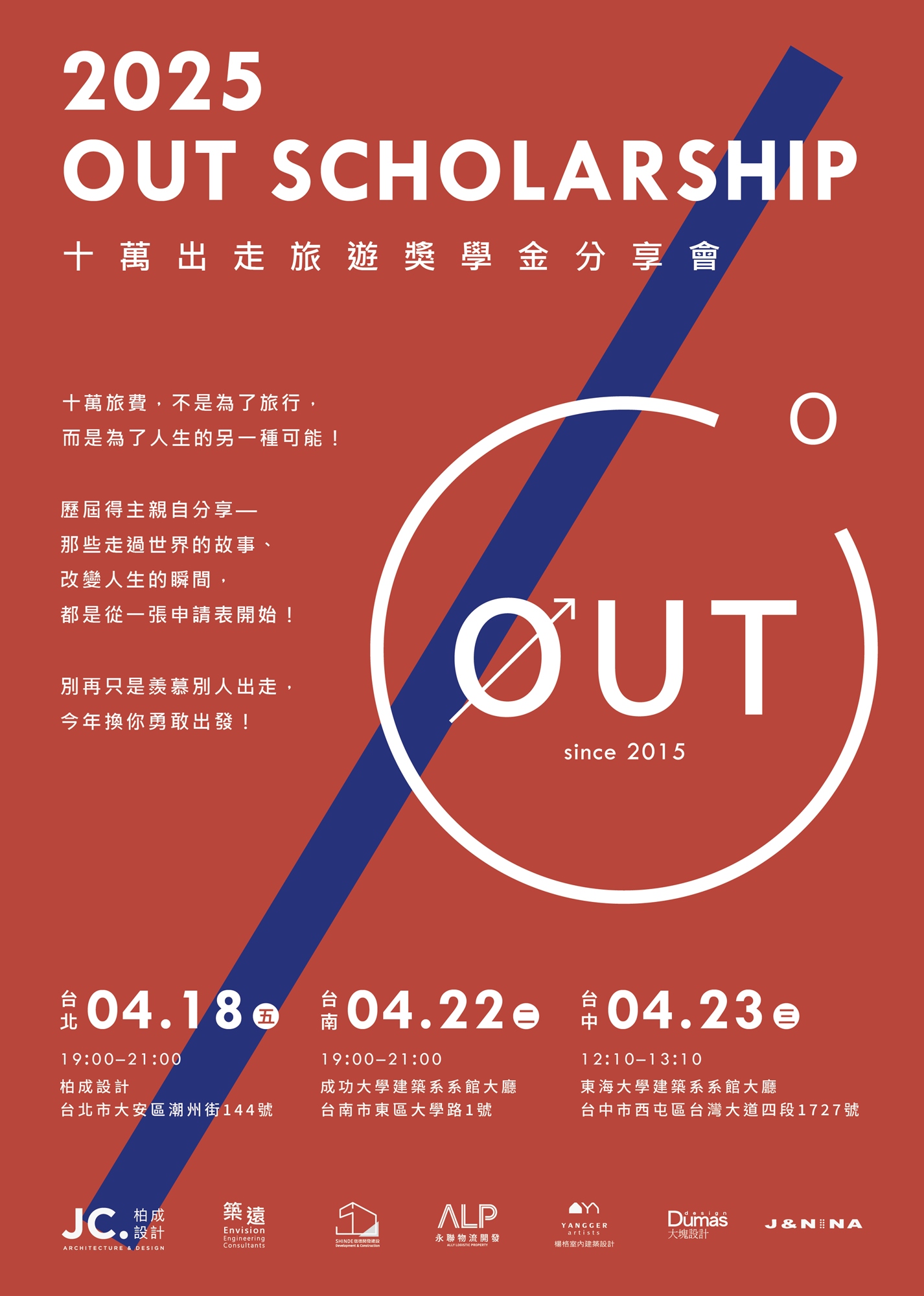 慶祝 OUT Scholarship 十周年,我們將走進台北、台中、台南!