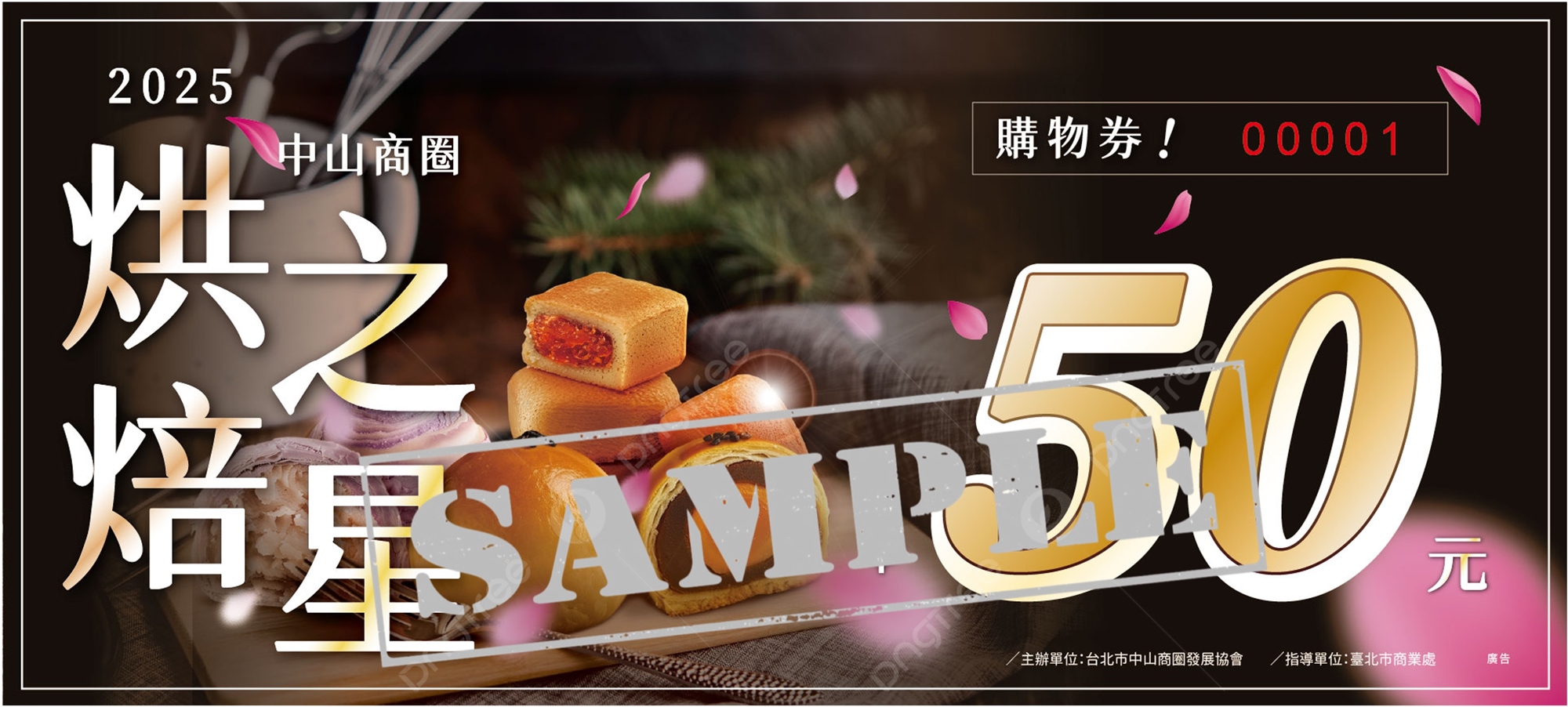 ② 200元購物券:2025年10月4日至2025年10月12日止,可於中山商圈之特約店家等同現金使用,請依各特約店家的營業時間進行使用,逾期作廢。(使用說明及特約店家名單會列在購物券背面,請詳閱使用說明 https://zsdda.org/2025bakingstar-02/)