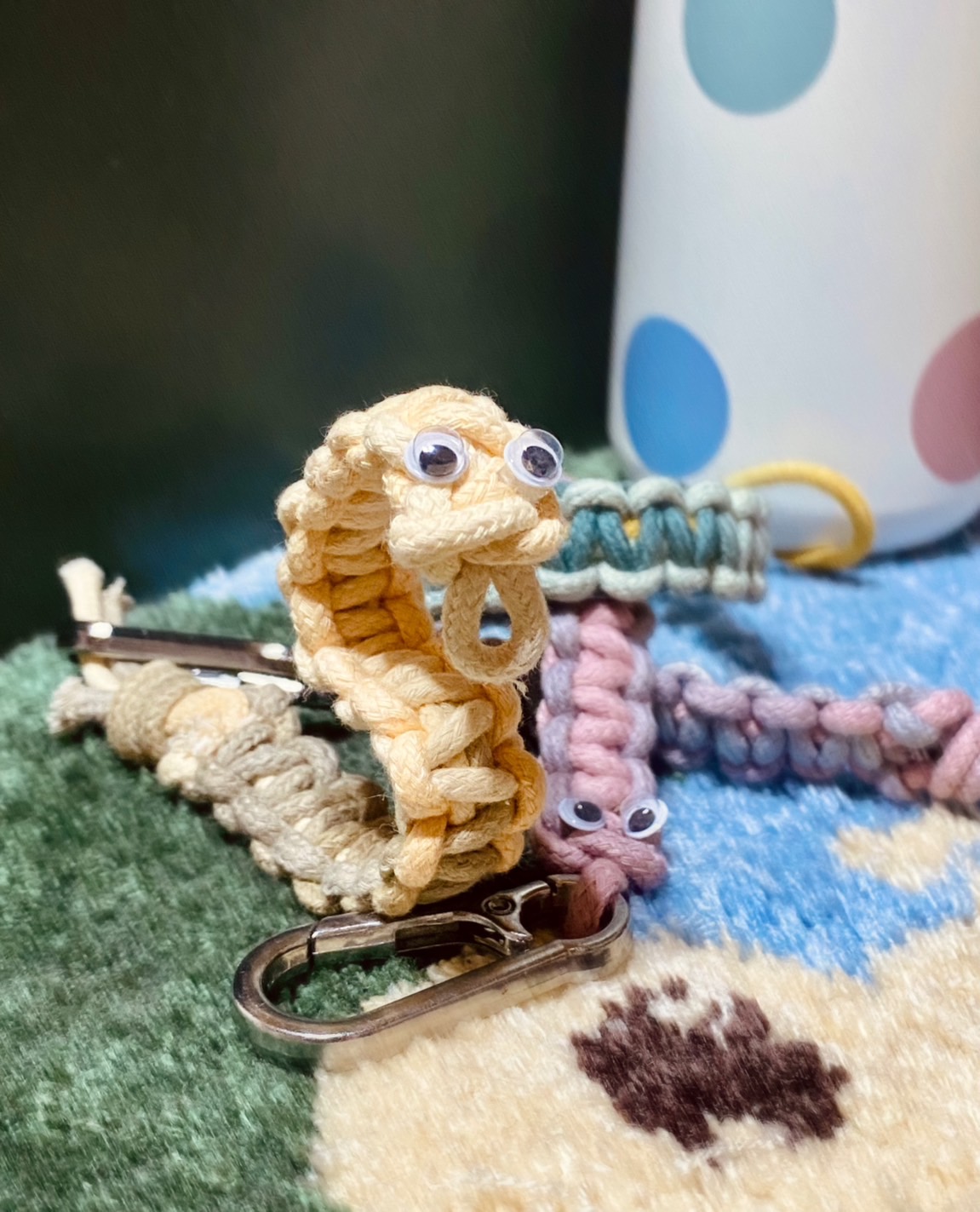 小龍年,編織金蛇招福氣,透過棉線編織打造可愛的吉祥小蛇,可以做成鑰匙圈或者是手環喔!