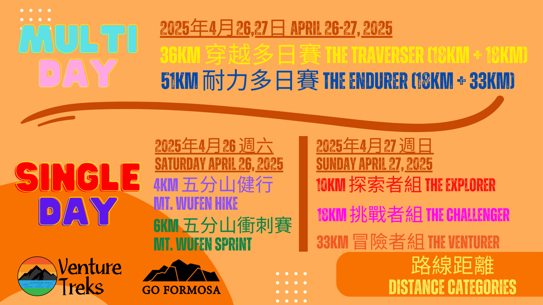4月26日的4公里五分山健行的6公里五分山衝刺賽還包括 Additionally included in the 4km Mt. Wufen Hike and 6km Mt. Wufen Sprint on April 26th:
