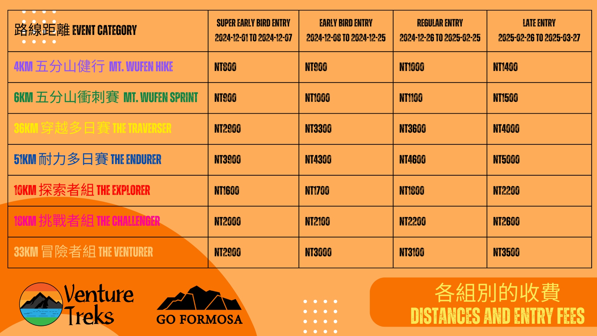 - NT600 for the Mt. Wufen Sprint (regular price NT1100)