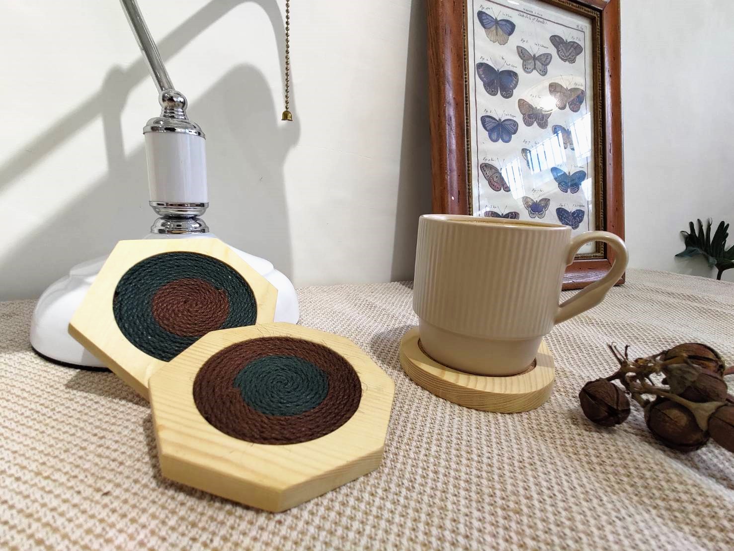 - 選擇喜歡的實木與線繞麻繩造型,開始製作杯墊
