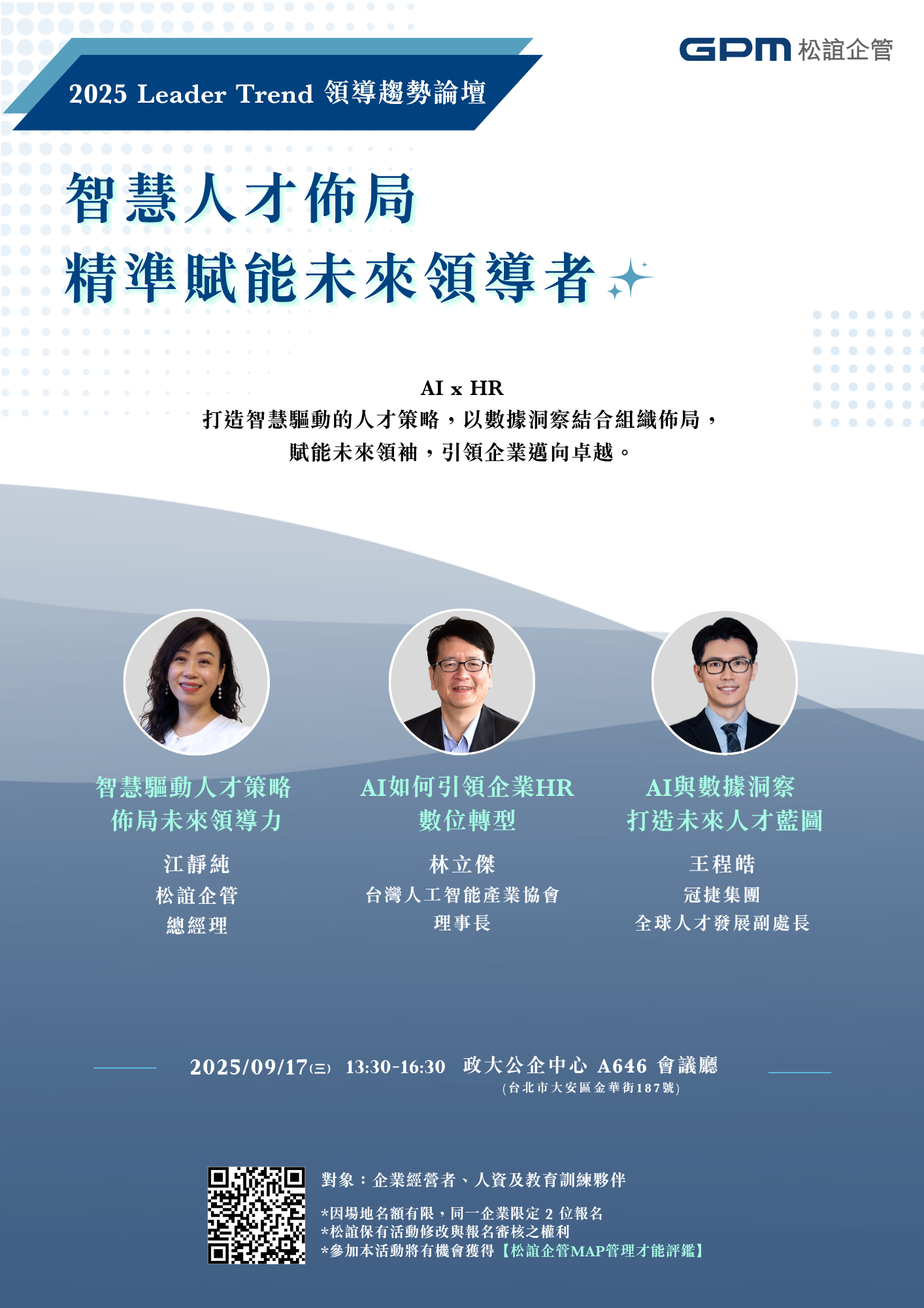 在 AI 正加速改變組織策略與人才佈局的時代,您是否已準備好,讓人才策略與領導力升級,迎向智慧驅動的未來?