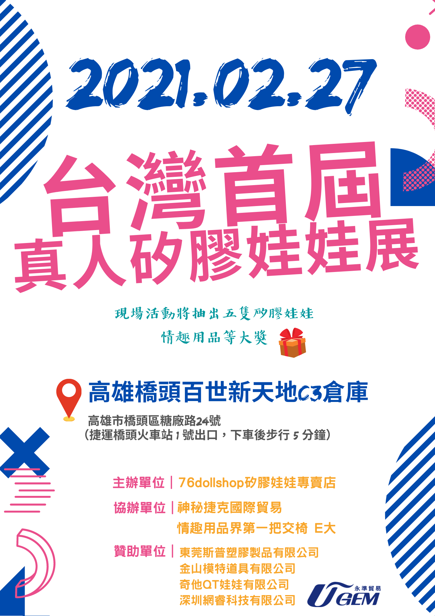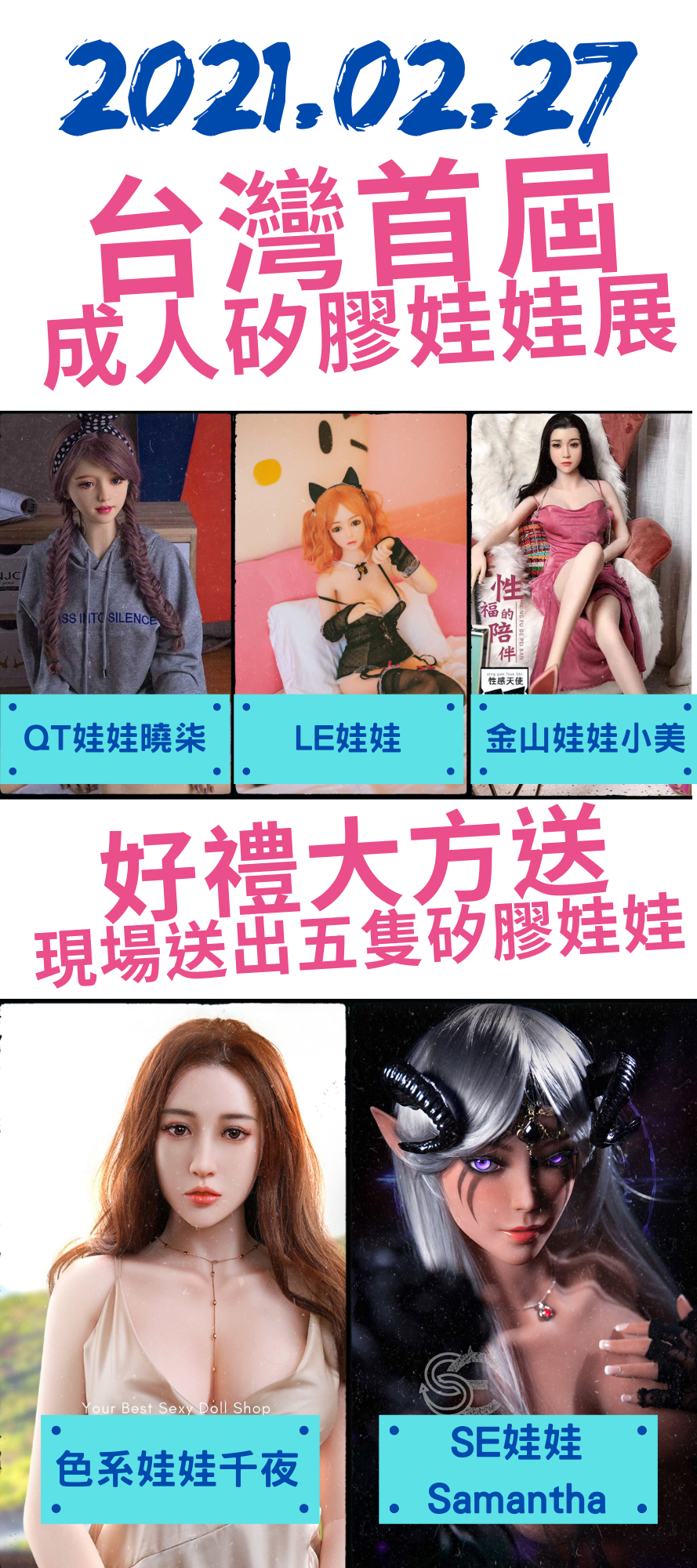 2021台灣首屆矽膠娃娃成人展,現場不僅有最新推出的各項矽膠娃娃產品(含機器人系列等 未曝光新品)以及各類型的週邊產品外,更抽出價值30w以上的大禮,讓你帶回家!