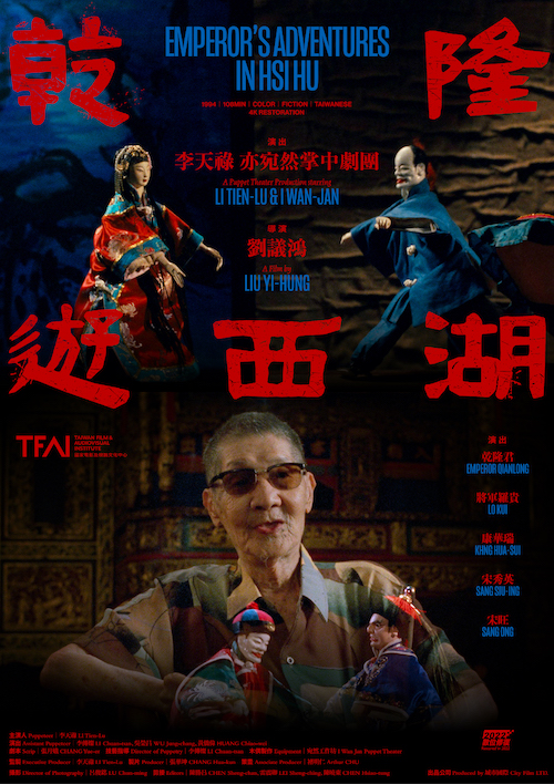 10月28日晚間19:00於國家影視聽中心3號門外廣場將進行免費戶外放映,播放李天祿藝師經典布袋戲作品《乾隆遊西湖》數位修復版。