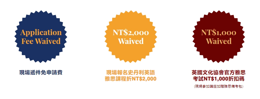 - 符合門檻資格,現場申請即可享各八大名校免申請費