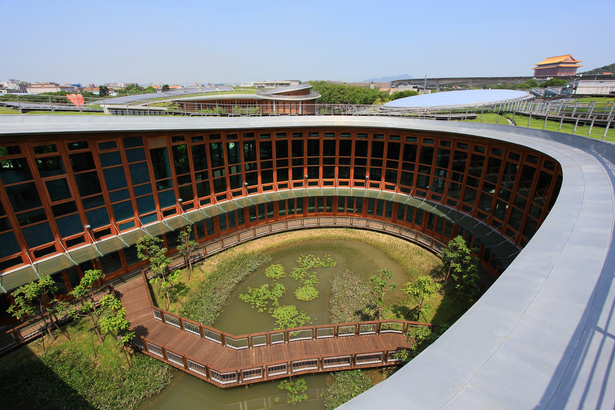 由九典建築師事務所掌執的新生公園花博建築群,全區共有19.5公頃,建築隱身於林中,這仍然是個屬於市民生活日常的公園。
