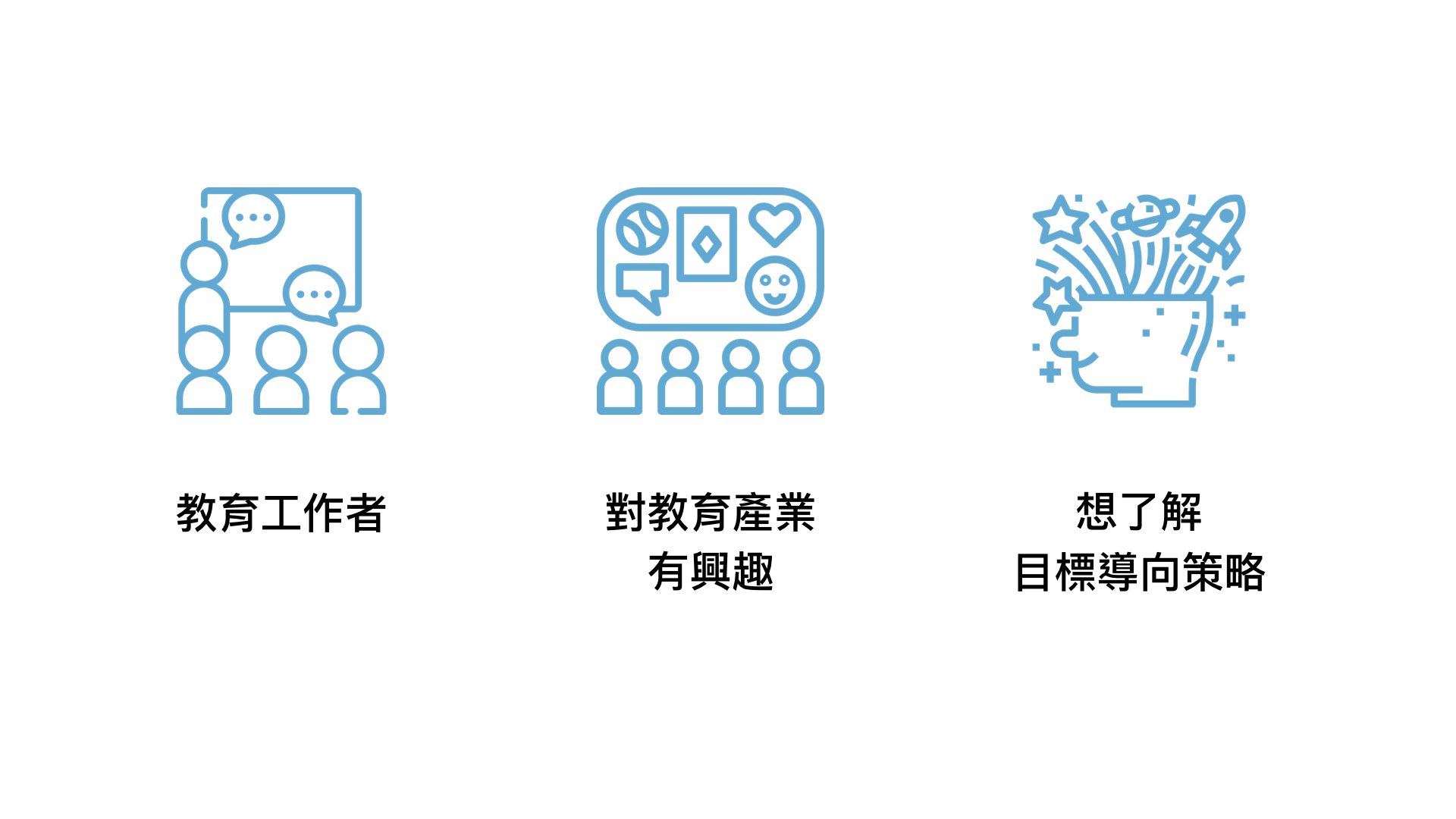 目標導向策略可以使用在教育、產品創新、企業創造力的培訓等等不同領域,但本次活動將專注於解決教學現場的教案設計。如果你是以下三種人,這場工作坊將會非常適合你!